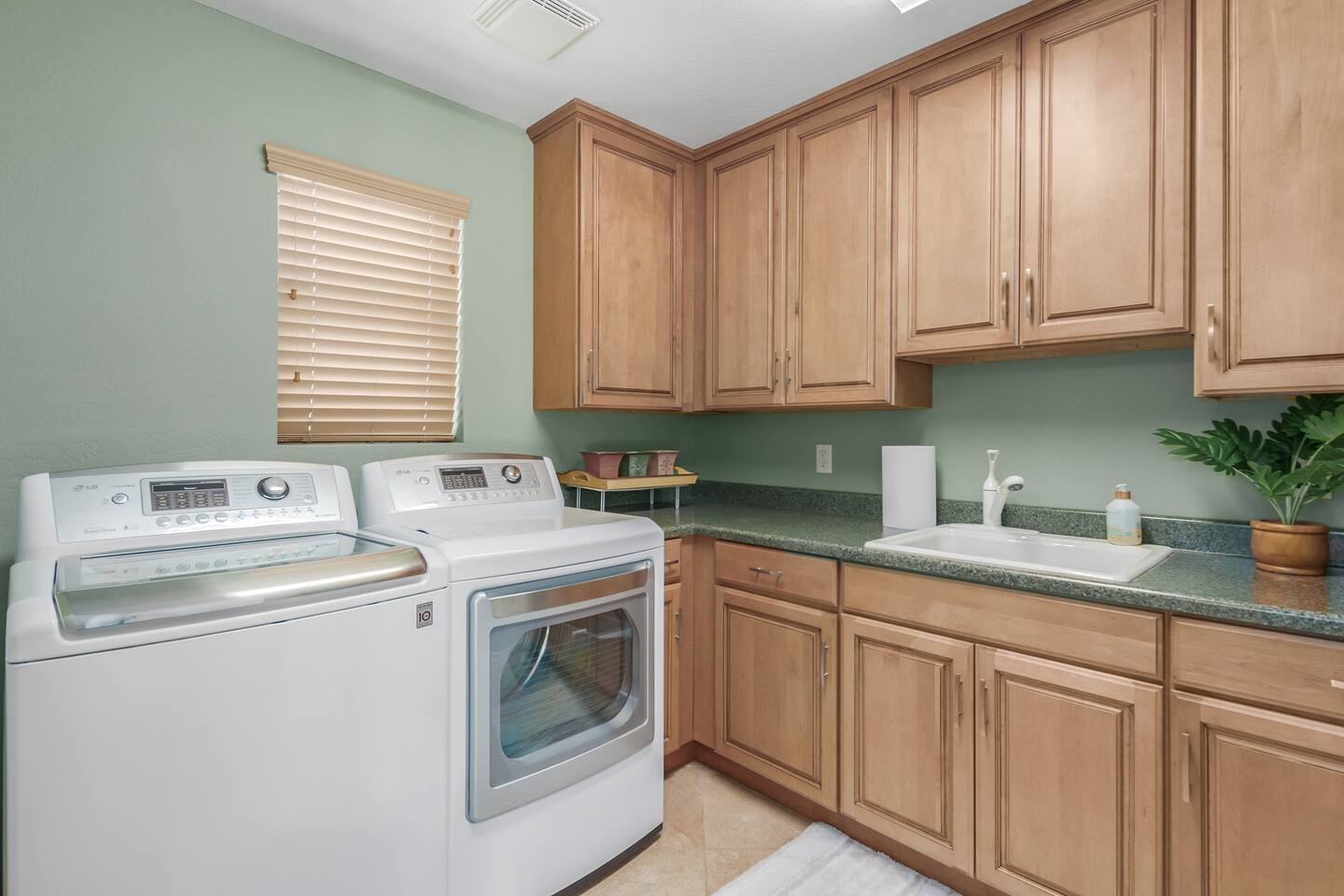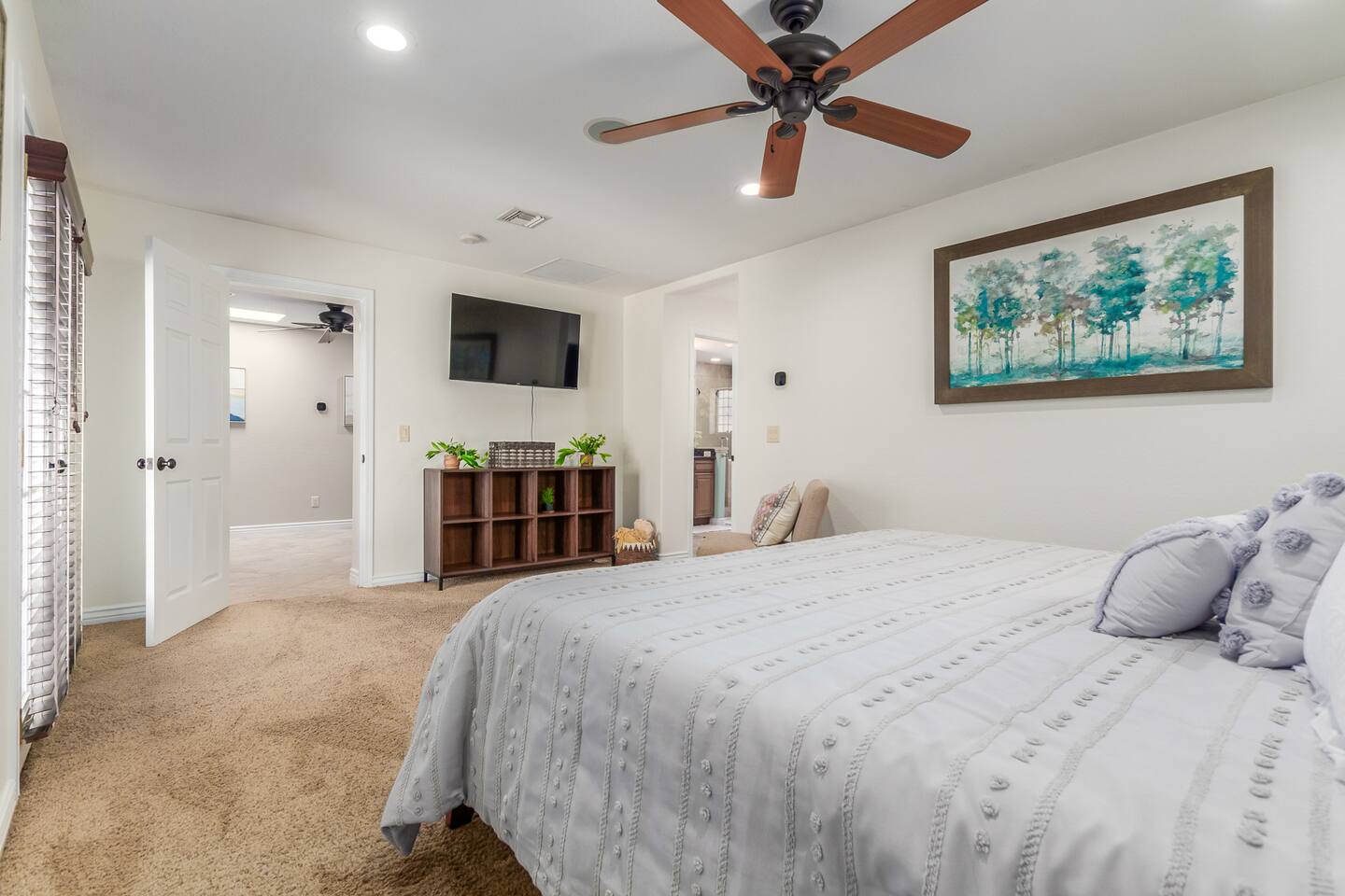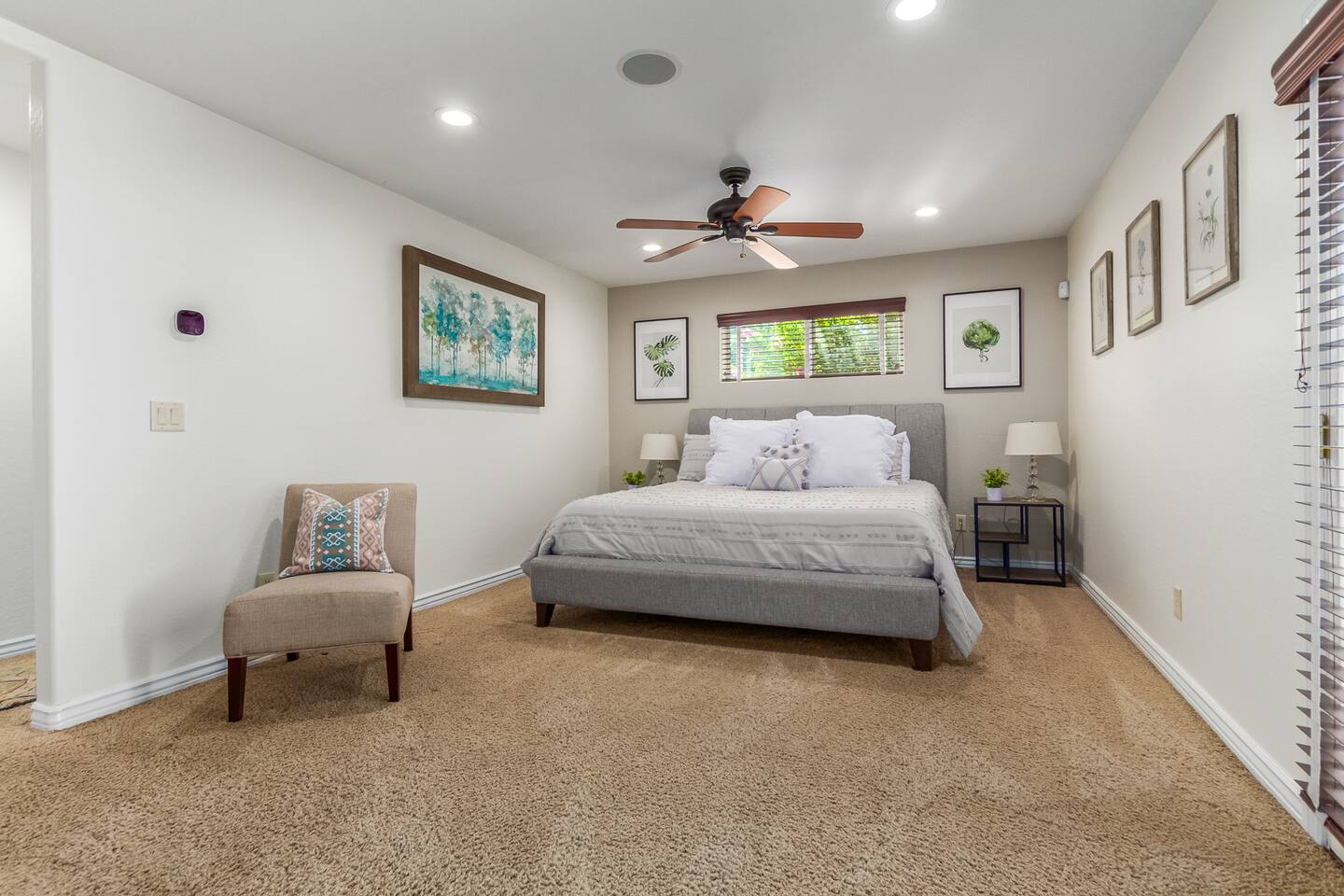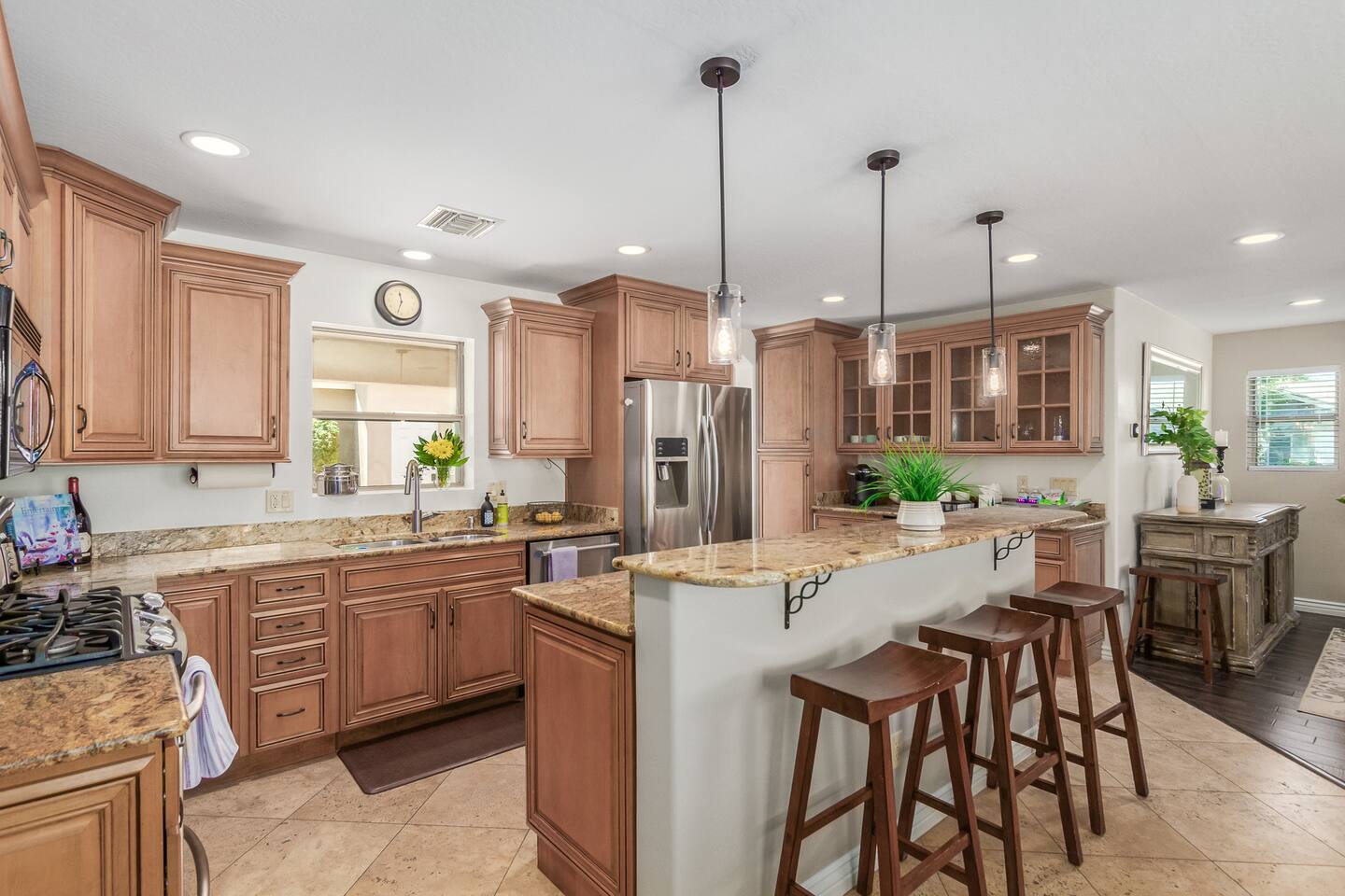 Welcome to your family-friendly retreat near Camelback Mountain and Old Town Scottsdale! Our 2,200-sq-ft single-level home is perfectly designed for comfort, connection, and play — ideal for families with young children or grandparents hosting grandkids. Inside, enjoy an open great room with a 65" Roku HDTV, cozy sofas, and dining for eight. The chef’s kitchen features stainless appliances, plenty of fridge space, a wine fridge, Keurig, and full cookware — everything you need for home-cooked meals. Two bedrooms offer plush king memory-foam beds and smart TVs, while the third serves as a kids’ haven with a bunk bed double/twin, full-size crib, toys, children’s books, and a workspace. A den adds a sofa bed and additional TV for extra flexibility. The master suite includes a walk-in closet, dual-sink bath, soaking tub, and French doors leading outside. A full guest bath, powder room, and laundry room round out the layout. Outdoors, families love the enclosed ranch-rail front yard — perfect for safe play while you relax on the porch with Camelback views. The backyard offers a covered patio, comfortable seating, ceiling fan, BBQ, and a swing set for kids (up to 70 lbs). Every stay includes baby essentials (crib, high chair, bath seat), 1 Gbps fast Wi-Fi, Roku streaming, and hotel-quality linens. Quiet, walkable neighborhood — minutes to hiking, golf, dining, and PHX Airport.